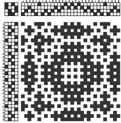 今回はそれぞれが特性を持つ数列(綜絖通し分類番号or踏み木の踏み順分類番号)を「合成」する事により新たな柄を創りだしてみたいと思います。