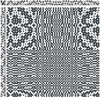 織物組織は経糸と緯糸が3つの条件(あすび通し、結合状態、踏み木の踏み順)のもと、両者がその交点においてお互いが上下関係を構成する事により作られています。この経(列)と緯(行)の関係は厳密で、同列、同行内では、規則性が必ず保たれなくてはなりません。その意味で、「織り」と「表計算ソフト(もっとも一般的なものはExcel)」は非常に相性が良いものがあります。表計算も行列の規則性は非常に厳格です。その為表計算ソフトの機能を利用すると、その行列に対する考え方から織りの多くの場面を系統的に理解する事ができるようになります。