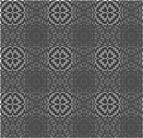 複雑なあすび(綜絖)通し、踏み木の踏み順の組織図を手で仕上げる事は本当に大変な作業でした。表計算ソフトの簡単な機能を利用すると一柄が数10回、数10本以上繰り返しの組織図でも誤りなく短時間で仕上げることができます。更に、様々な工夫により実際の織りにより近づける事が可能となり、画面上での試し織りが可能となってきました。織りのデザインを思い付いたら直ぐに組織図を描いてみる、この作業が短時間で出来るということは織りにとって物凄い戦力です。どんな織りであっても経糸を織り機にセットするという作業量は大変なものです。たとえ机上の作業であっても、イメージを実際に視る事が出来るのと出来ないのでは結果に雲泥の差が出てきます。