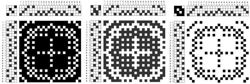 下の展開図は柄の特性を保持しながら経糸(緯糸)の出現回数を変えることによりグラデーションを作成したものです。