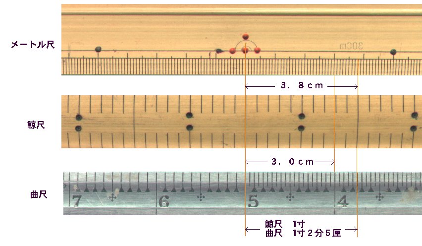 (曲尺の1尺=3cm 鯨尺の1尺=曲尺の1尺2寸5分)