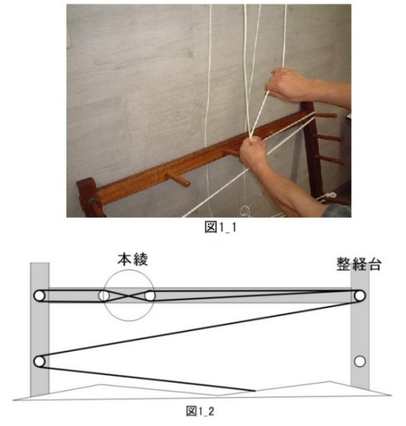 図1-1の場合は頭を切る必要はありません。もし切ってしまっても以降の手順が増える程度で解決可能です。また整経時整経台を回る「まわし経り」の場合は必ず頭を切るためこの心配はありません。