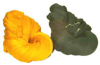 右が30/2の16匁かせ(ダブルがせ)(写真の1/6が1かせ)
