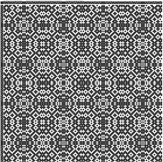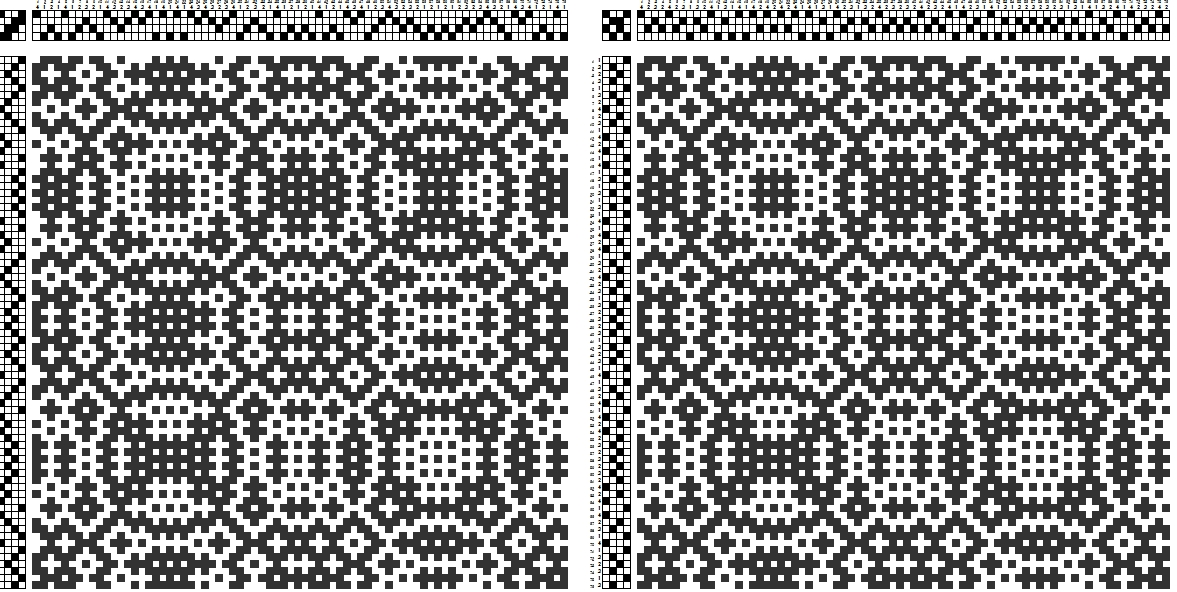 | 対角線に囲まれた組織が現れました. (注)組織に倍率を付与するためには上図を元に「綜絖通し表」と「踏木の踏み順表」の作成が必要です。 |
